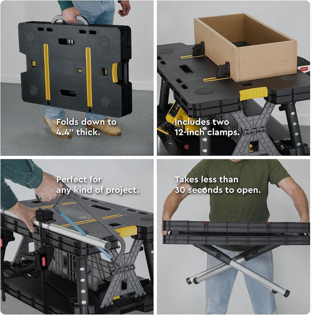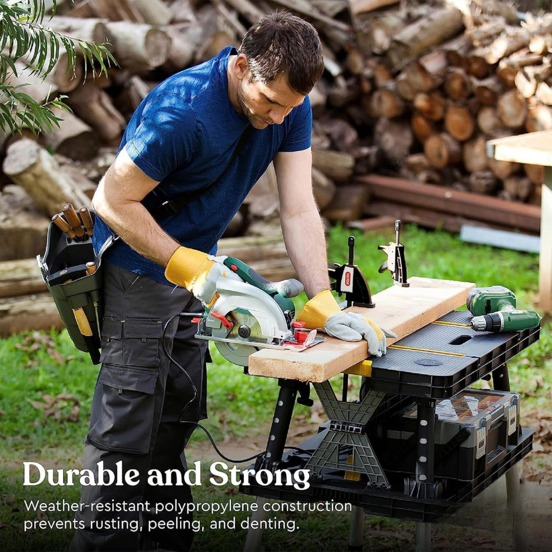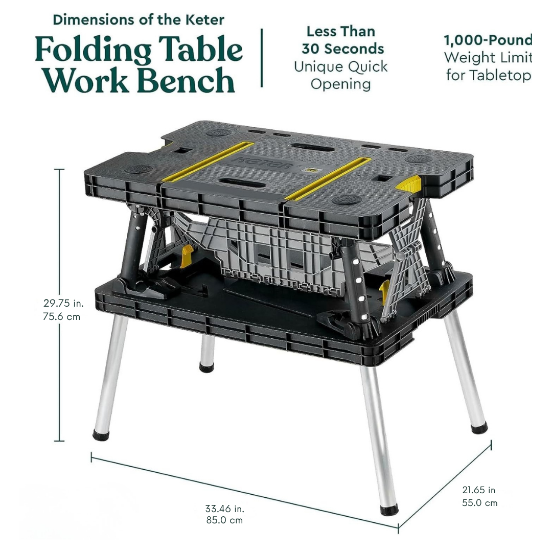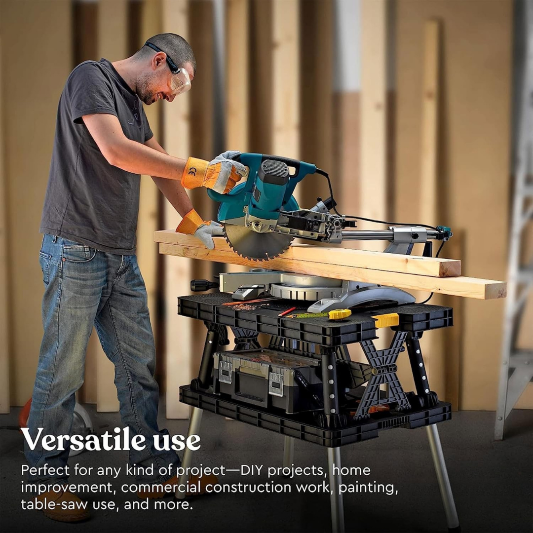 Perfect for miter saws, sanding, painting, or measuring, its quick-fold system opens or closes in under 30 seconds.